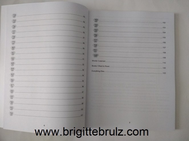 These large 8.5″ x 11″ soft cover reading journals have space to record a total of 100 books. Other than the spacing options, the insides are practically the same.