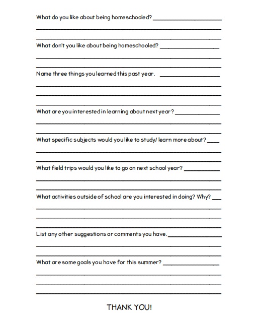 Our homeschool year is coming to an end at our house, which means it is time for our annual end-of-year school survey.