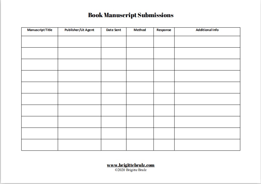 Whether you decide to submit to literary agents or directly to publishers, you should keep track of all your submissions. If you have your own way of doing this that works for you, great! I’d love to hear about it. If you don’t have any chart of your own, you are welcome to download the chart I use to track all of my submissions.